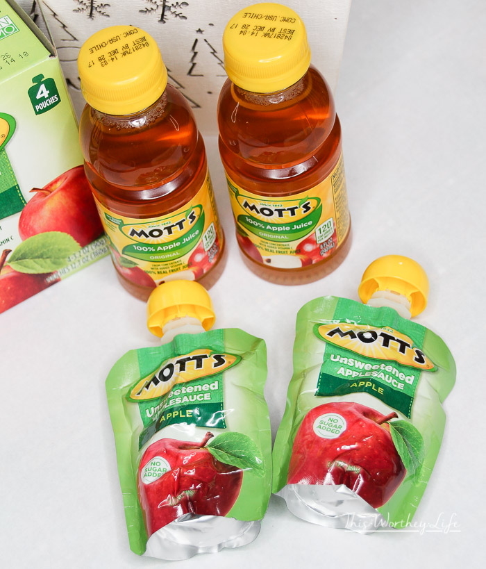 - Keep snacks on the table. I like to buy Mott’s 100% Original Apple Juice and their Unsweetened Applesauce Pouches.