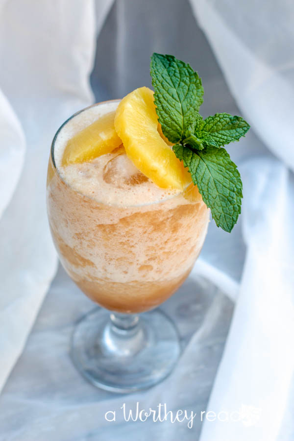• Pour mixture into a large glass and garnish with two (2) pineapple slices and a sprig of fresh mint.