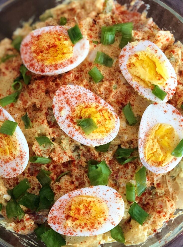 Potato Salad with a little Caribbean flare. Curry powder, ground ginger, allspice, and Olive Oil Miracle Whip make for a sweet and savory flavor profile that elevates this classic dish to new heights.