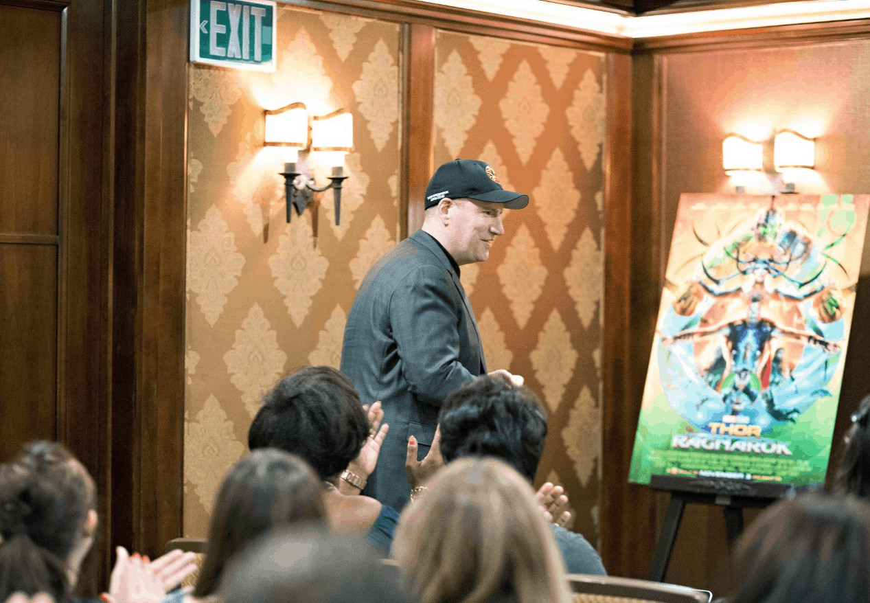 When asked why Thor Ragnarok was different from the other Thor movies, Kevin had this to say. “This was our idea, perfected and improved by Taika [Director]. We wanted to, as we always do in our movies, go to a new place. Go to an unexpected place. Look at what we did with Shane Black’s Iron Man 3, the third Captain American film, with Civil War and we always look at a third film, Infinity War in the case of Avengers coming up, as an opportunity to, to take what the fans like, that they’re willing to go with us and take them to a totally unexpected fun place.”