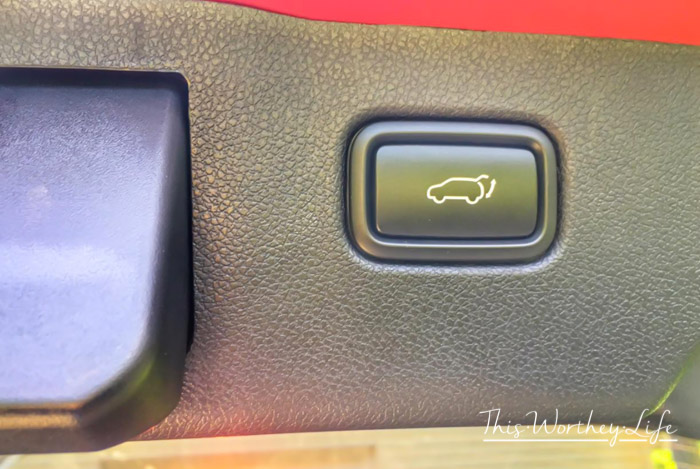 Lifesaver button. This little button, oh how I LOVE you! The Smart Power Liftgate comes standard on a lot of SUV’s, and I’m glad to see KIA follow this trend. I did not have this option on my 2011 SUV, but in my next vehicle, this is a must. It’s easier to carry all of the bags in the house at once when you can close the trunk with a touch of a button. Yeah, this little button saves lives!