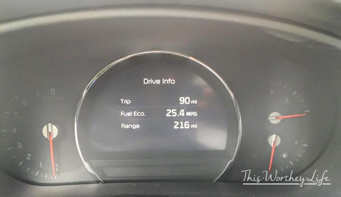Save on Gas. I snapped this photo of my current gas mileage after a crazy day of running errands with the family. I typically get between 22-25 mpg in the city and up to 30 mpg on the highway.