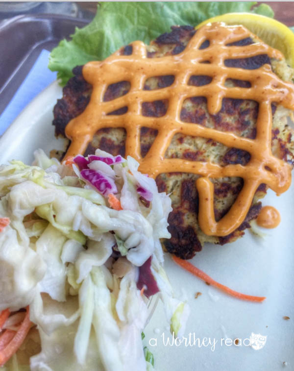 After having one bite of their Lobster Bisque, I can see WHY it’s such a big deal. I’ve had LB a few times in my life, and I highly recommend The Boardwalk of having the BEST Lobster Bisque. This bowl of yummy goodness was creamy and full of lobster meat! When the boys said they wanted to try it, I was hesitant about wasting my money and buying them a bowl. Thankfully, they will let you try it before buying it. Ziah and Zayd’n loved it! Our consistent child, Zion stuck with his regular burger and fries. I also ordered Maryland Crab Cakes ( LOVE crab cakes), and they were also delicious!