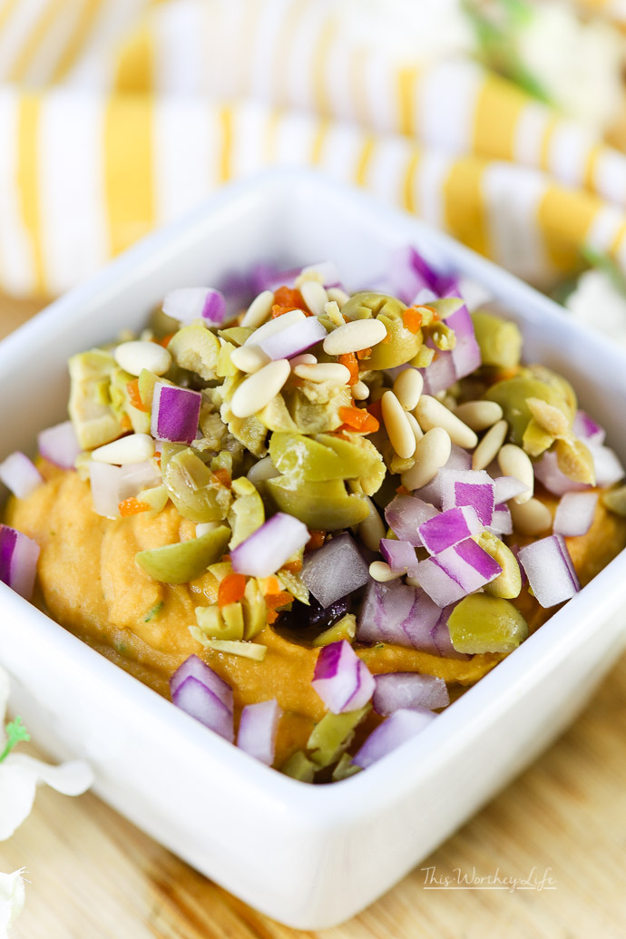 We love hummus here in the Worthey house, and we’ve switched things up by taking two things we love to create a loaded sweet potato herb hummus! With fresh veggies, sweet potatoes, chickpeas, tahini paste, and a few other ingredients, grab some pita bread and start dipping!