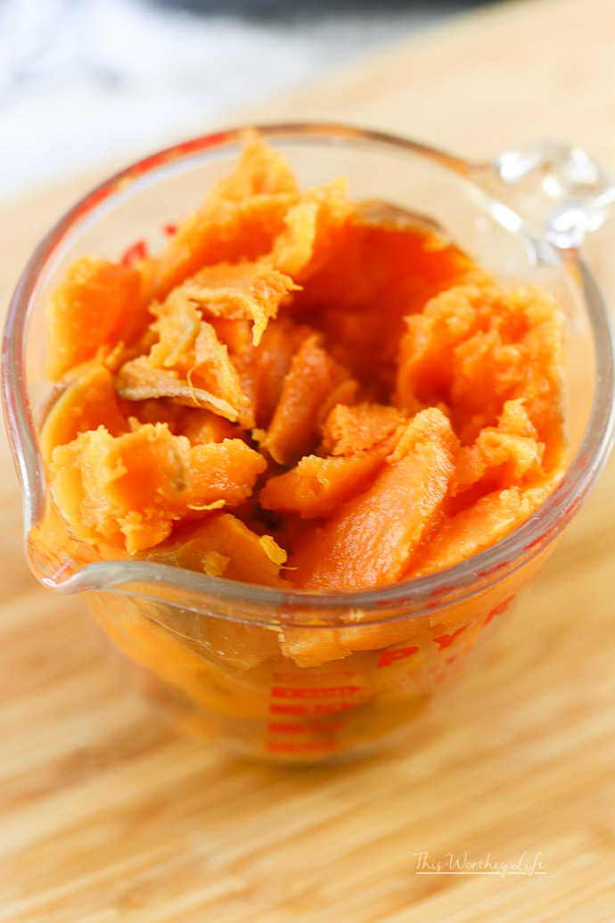 - 1 cup sweet potato, cooked, cut into chunks, then mashed