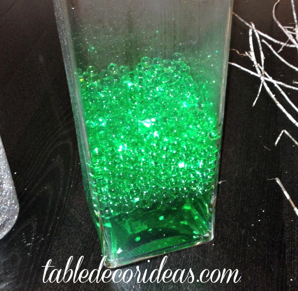 Then add the green water gel beads. (or you can pick another color, or a few colors to mix it up.) I had to go back to Michaels to get more gel beads and grabbed some multicolored ones.