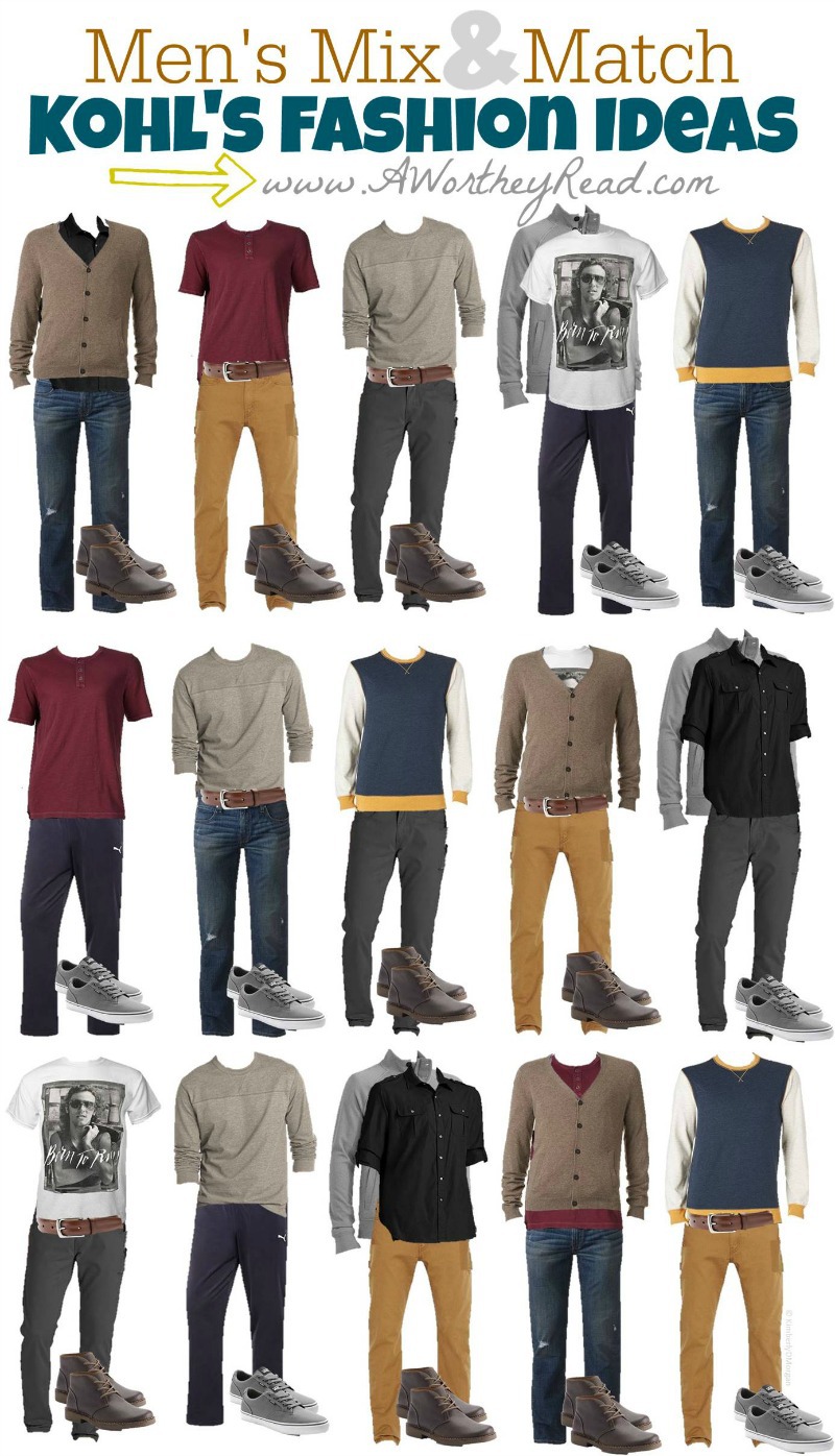 Have your Man looking good with some of our Men’s fashion mix/match ideas listed below. This is also a great way to save money and time. By buying a few pairs of pants, a few pairs of shirts and shoes, you can easily mix and match your pieces to make new outfits.