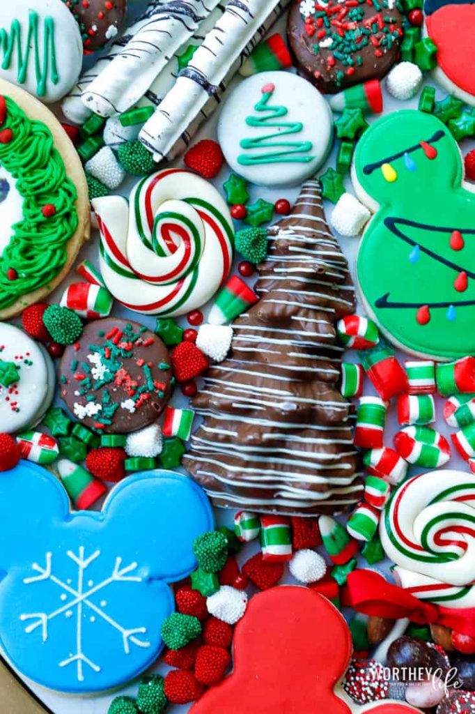 Have fun with this holiday Mickey Mouse tray; there are so many ways you can transform all the treats into a gorgeous dessert board.