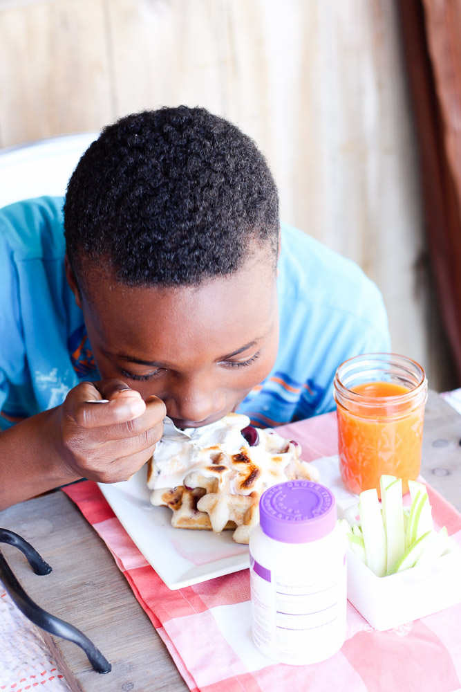 Kids love waffles! Grab our easy, quick and kid-friendly recipe for Blackberry Mini Waffles. It’s important for kids to have a well-balanced breakfast with all the important nutrients.