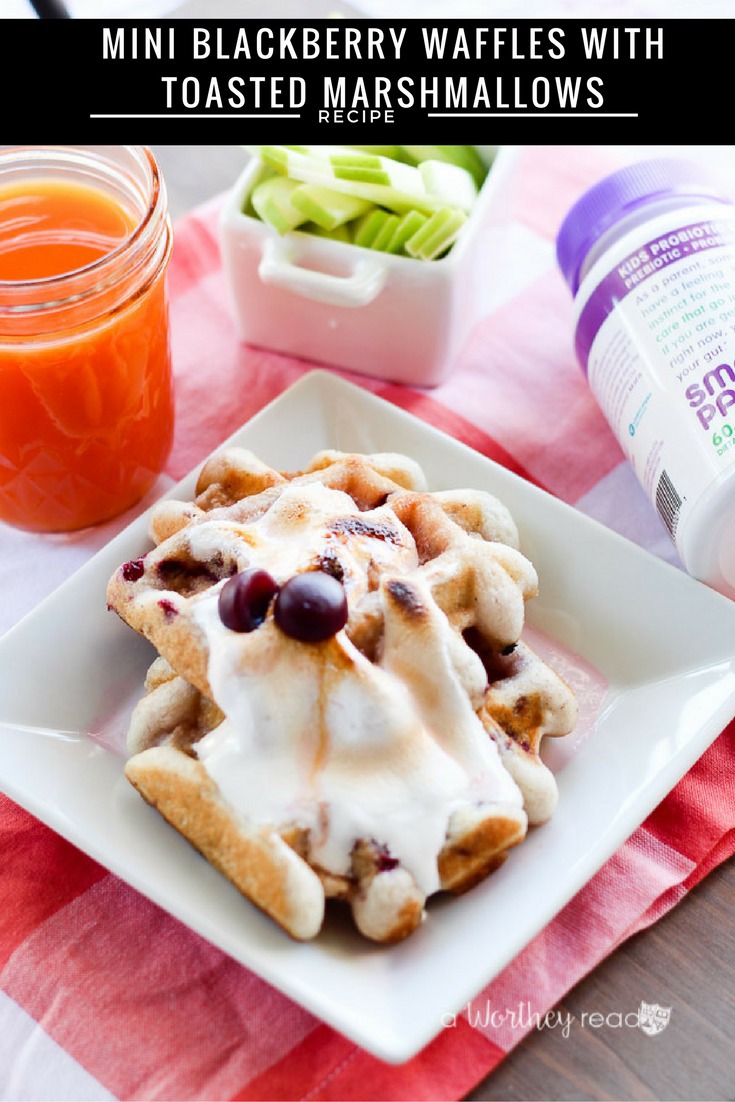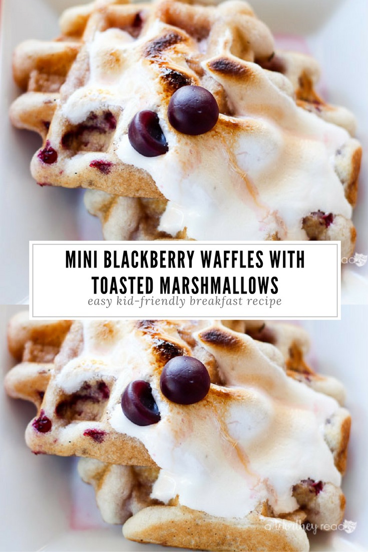 I’ll also call these delicious Blackberry Mini Waffles with Toasted Marshmallows another win and a favorite go-to breakfast idea in the Worthey house. With a waffle maker, making these babies takes no time at all. Add some juice, fruit, and their daily dose of vitamins, and breakfast is served!