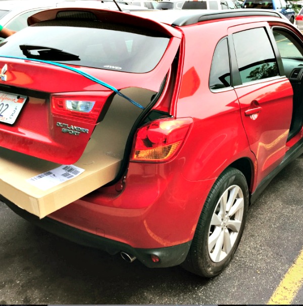 You see, we were driving a 2015 Mitsubishi Outlander Sports SE AWC. This is a smaller Crossover SUV, so I wasn’t sure if this long table would fit. We went back and forth second guessing ourselves wondering whether the table would fit in the SUV.