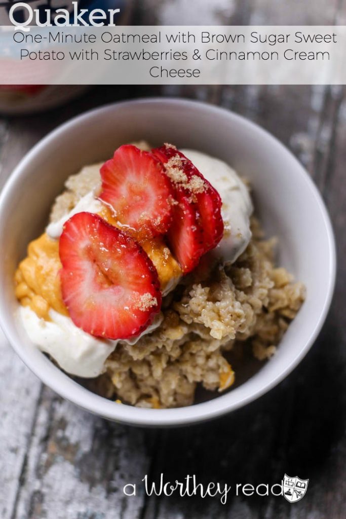 Quaker® One-Minute Oatmeal with Brown Sugar Sweet Potato with Strawberries & Cinnamon Cream Cheese