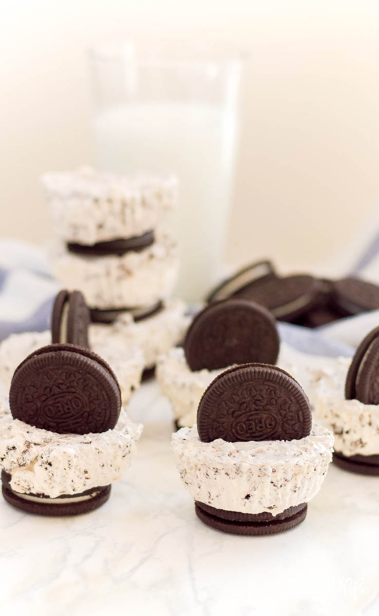 - In a food processor, crush up 12 Oreo Cookies and set aside.