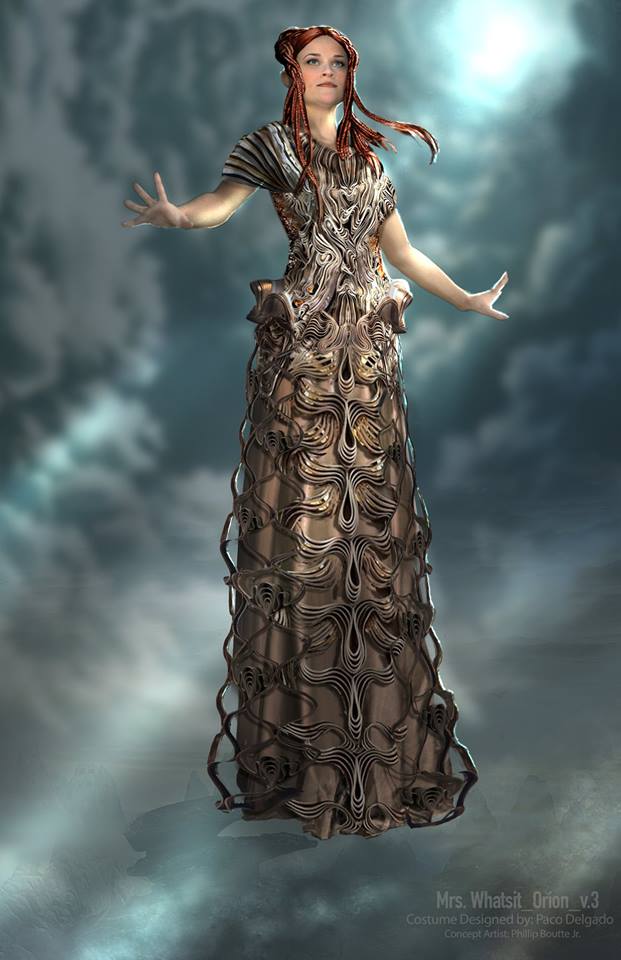 The first thing Paco does when he starts working on new costumes for a film is NOT to design the costumes. He looks at the script first. “There’s a lot of information in the script. In the script you read things, “She wakes up in the morning, Or she goes and takes a bus.” There are really, really tiny things that they always tell that you can understand things. In this movies, they (referring to the Mrs.) don’t wake up in the morning. They don’t have any porridge in the morning. You don’t know what they are doing because basically, they don’t behave like human beings. Then after you read the script, you get some hints. For example, Oprah’s character that she is Mrs. Witch. She is a warrior fighting in the universe against the forces of evil. And she was original, like a supernova that exploded and became all this energy. Then you already know, Oprah’s character has to be energy. And she’s a warrior. Then you have there so much information.