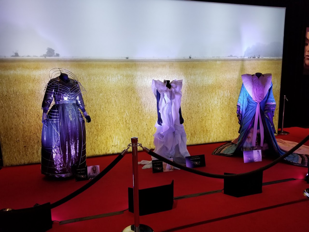 Paco shared with us how sometimes he may start a design, and have one idea in his head. Then he goes and talks to the director, and they have a different idea. Then the actors may chime in sharing an idea they have on how they want to look. Paco has to take in all of this information and go back to the drawing board to come up with a new concept. But that’s the fun (and sometimes frustrating) part of being a costume designer on a movie set. When talking to Paco about this, he didn’t make it sound like it was a chore. You could tell that challenges and coming up with new design concepts excite him. And, from the beautiful costumes he designed for A Wrinkle In Time, his work speaks for itself.