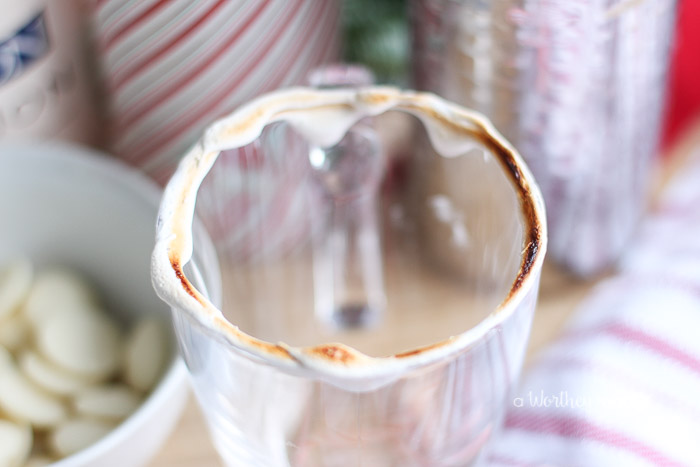 - Coat the rim of a glass mug with marshmallow creme.