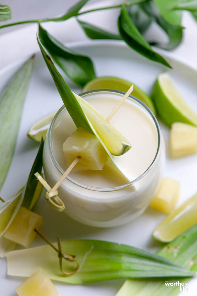 This delicious mocktail is made with coconut milk—it helps add flavor and creates a smooth and creamy texture. However, using coconut water would dilute this virgin piña colada recipe, giving it a watery taste.