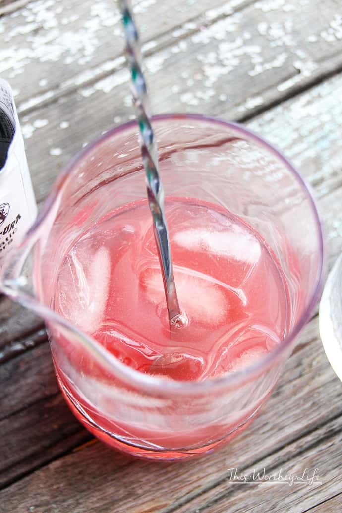 - Stir vigorously with a long-handled bar-spoon.