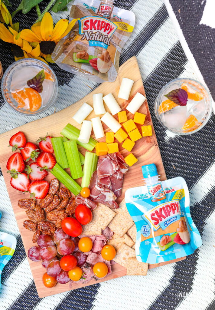 As a family, we love getting outside and enjoying the sunshine and the fresh air! And some of our favorite outside activities include hiking, visiting local parks, the beach, and enjoying our backyard, affectionately known as The W. When it comes to enjoying good food outside, what can be better than packing a delicious picnic? With SKIPPY® Peanut Butter Squeeze Packs, putting together an easy Picnic Basket Charcuterie Board is a breeze.