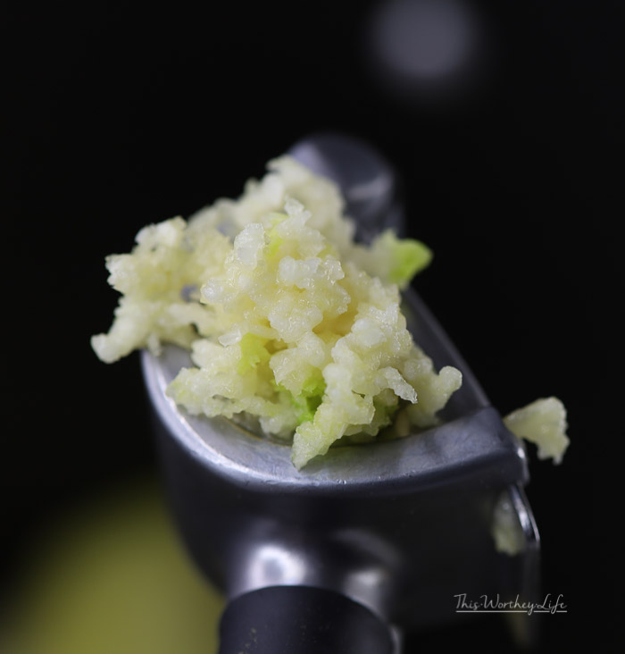 Same goes for the garlic, for this recipe I used three large cloves and ran them through a garlic press.