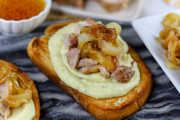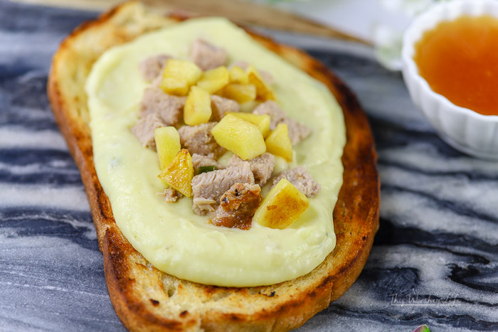 Now, let’s build our Herb Pork + French Potato Bruschetta