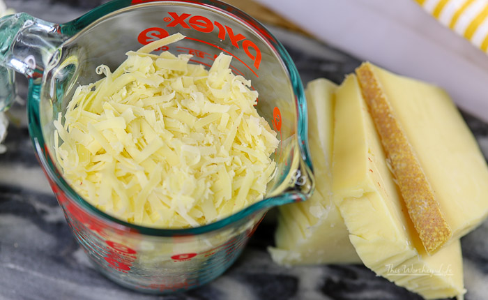 After you grate the cheeses you will immediately understand why these three kinds of cheese were used, don’t they smell amazing? Now, wait until you taste them.