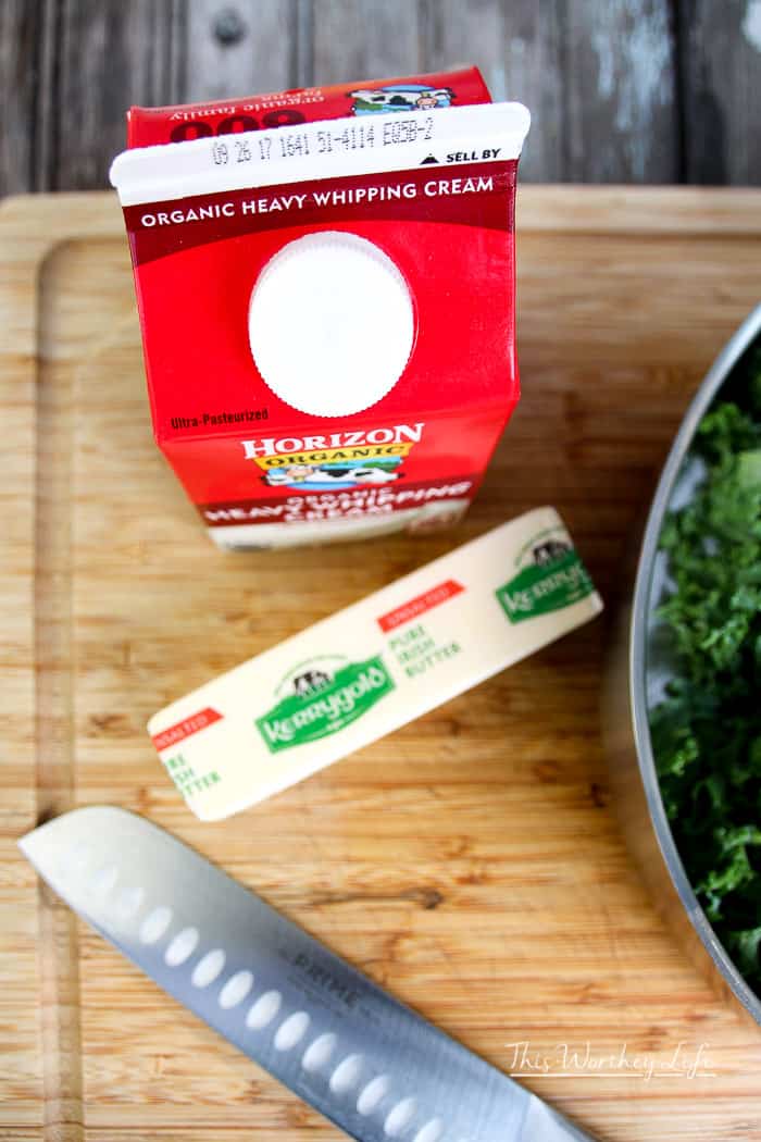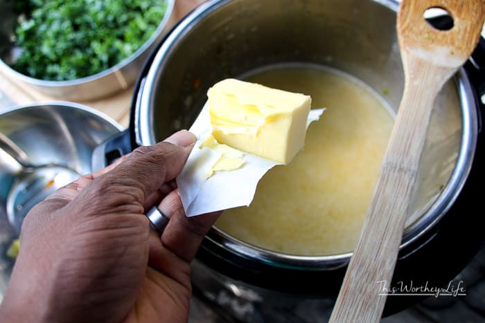 I used a 1/2 stick of Kerrygold unsalted butter, and it just makes all of the difference in the world!
