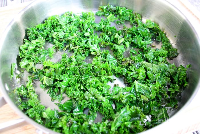 After they’ve been reunited with the rest of the soup, it’s time to pan-fry some Tuscan Kale.