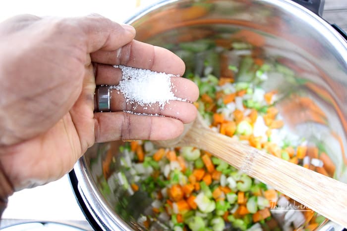 Add salt and freshly cracked black peppercorns while sautéing vegetables; they’ll turn out flavorful, and who doesn’t want that?