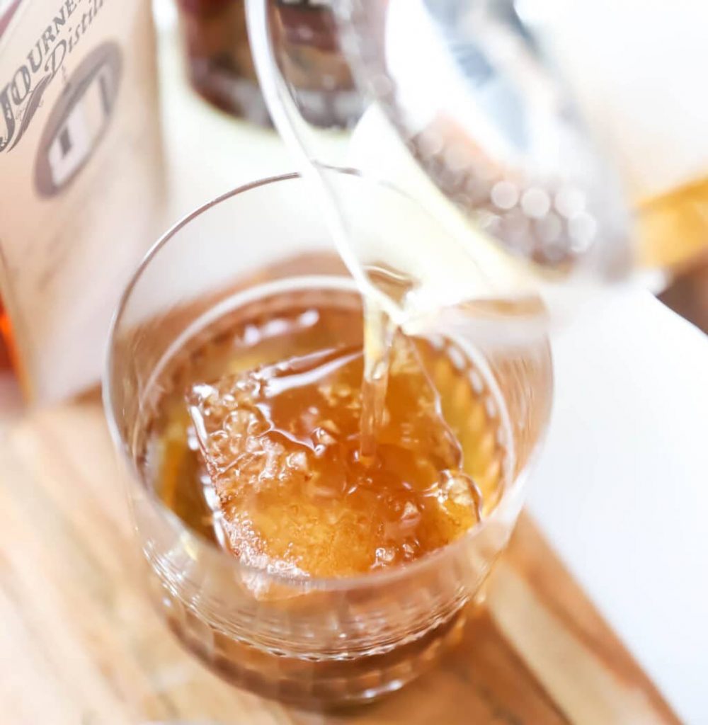 And how about the large block ice cube of frozen coffee tho? This is pure genius and because coffee is a fall and winter mainstay, okay a winter necessity. This recipe is an ideal whiskey cocktail that’s a sipper best enjoyed curled up on the couch in front of a roaring fire.