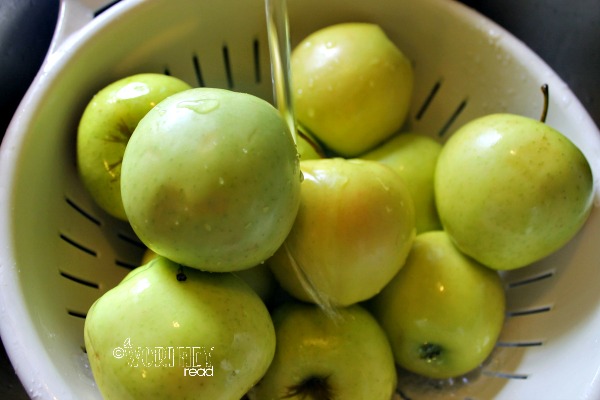 - Wash your apples well under running water to remove the wax and residue from the grocery store, and remove stems.