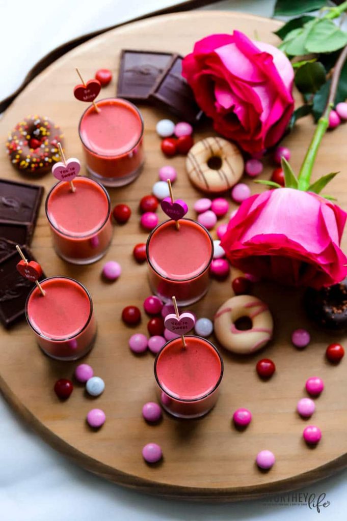 - Garnish with a festive Valentine’s day candy cocktail stick.