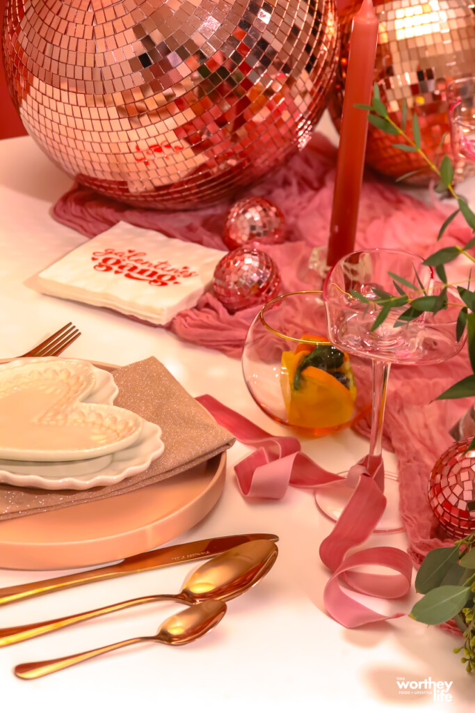 Get inspired to host a Galentine’s party with a few of your girlfriends with this rose gold table setting theme!