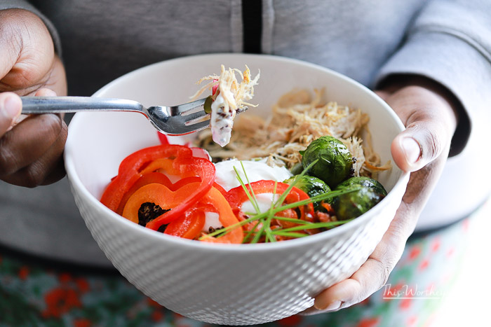 Savory Yogurt Bowl with Quinoa + Shredded Chicken {+My Health Resolutions}