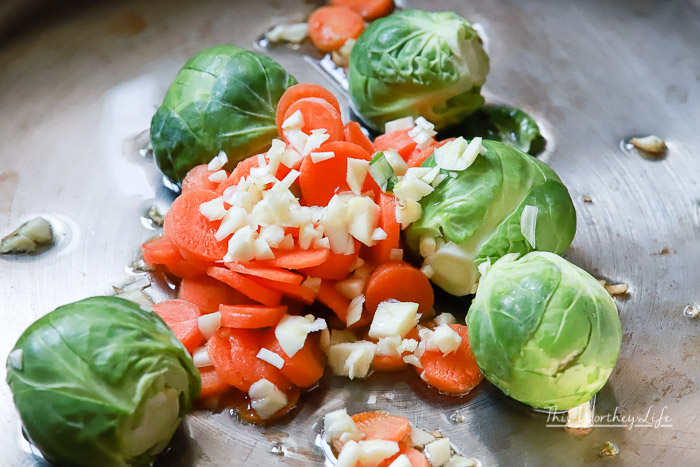 - Brussel sprouts sautéed with sliced baby carrots and chopped garlic