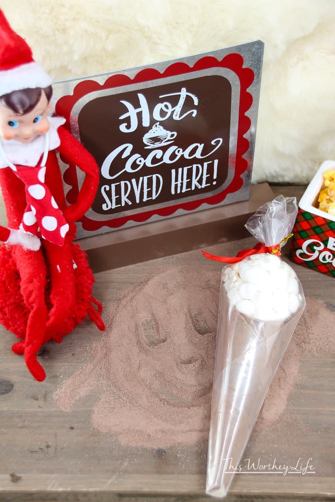 Elves love hot chocolate, and I bet your kids do too! This is an easy way and budget-friendly Elf on the Shelf idea!