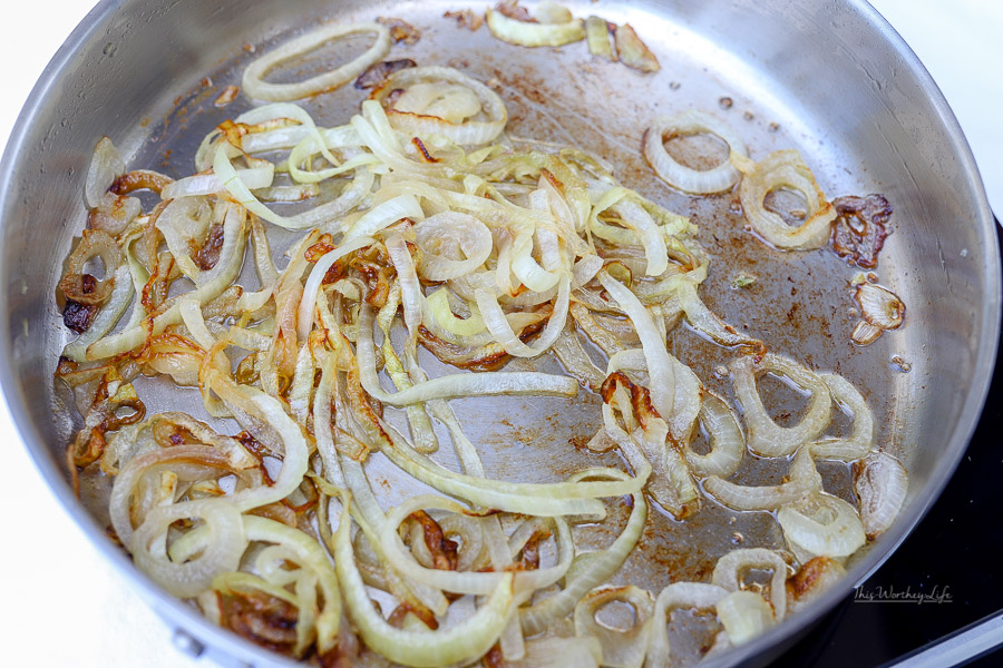 And of course another way to elevate almost any savory dish is to add a slew of caramelized onions, I always make more than I think I’ll need only because I can’t to seem to get enough of them.