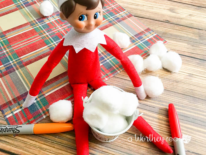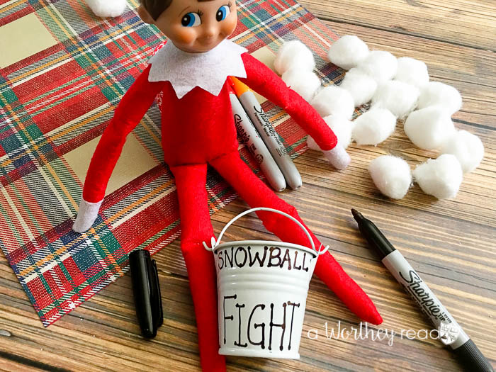 Now, we have a simple snowball fight idea here that involves a few cheap supplies you may already have or can grab at your local dollar store. You can set this up in a few ways to suit your needs, but we have outlined our favorite below. However you manage to set up your snowball fight, your kids will love seeing this and other Elf On The Shelf Ideas we have to share with you this holiday season.