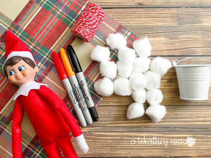 6. Fill your bucket up with cotton balls and place in your elf’s lap