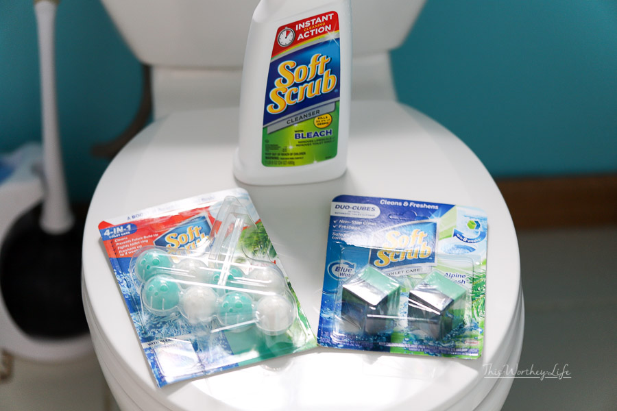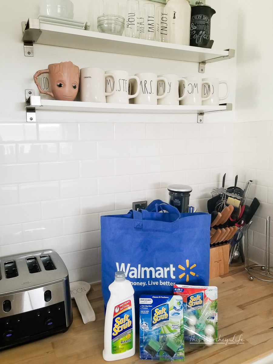 - Head to Walmart to get all of your cleaning supplies, including Soft Scrub® products (like their new Soft Scrub® Alpine Fresh Duo Cubes), as well as a toilet rim cleaner, and I like to get their Soft Scrub® Cleanser with Bleach for the kitchen and bathroom. My mom always brought this brand of cleanser growing up, because it got the job done. It’s a familiar face, and I like to continue using brands I grew up with, knowing if it was good to use back then- it’s still good to use now.