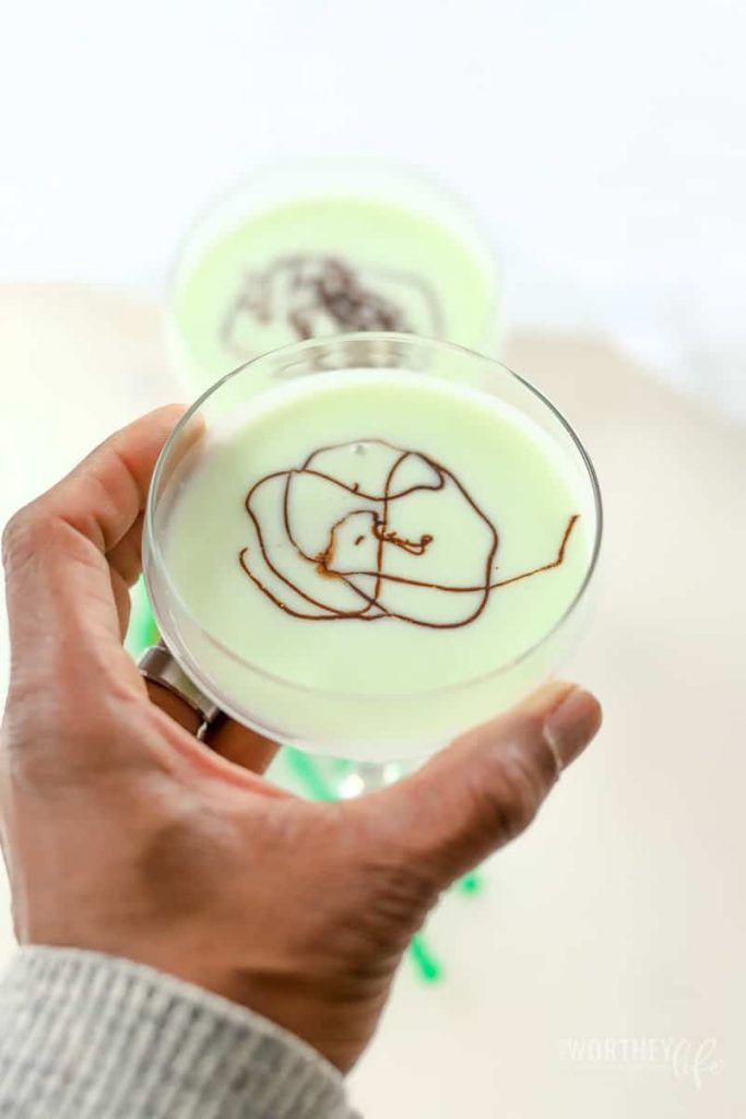 - Feel free to line the glass with some chocolate sauce so when they take a sip; they get chocolate next to mint.