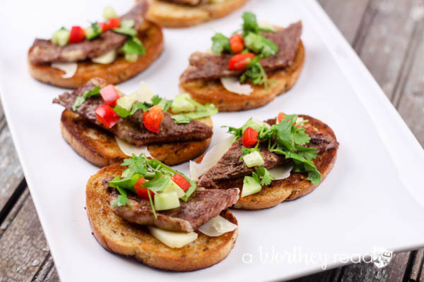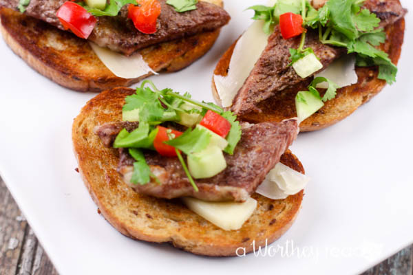 Easy appetizer idea for game day or a dinner party, Angus Steak Bruschetta Appetizers