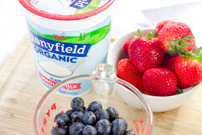 Would you look at all of those strawberry and blueberry swirls and creamy yogurt? Reminds me of the Milky Way only yummier!