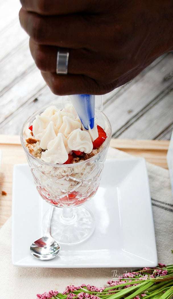 The filled bags make it so easy to make your desserts look extra special. We try to make our treats extra special, like these strawberry shortcakes.
