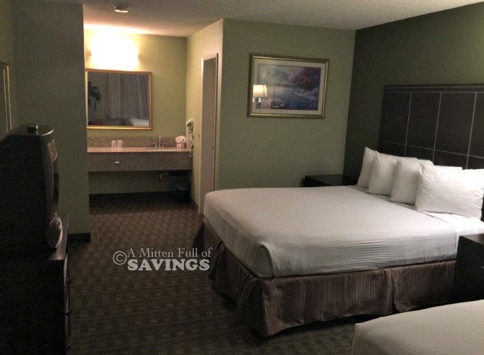 The main sitting area featured a large flat-screen t.v. Mini-refrigerator and microwave. It also featured a sofa bed, which was nice because the boys didn’t have to try to pile into a single bed.
