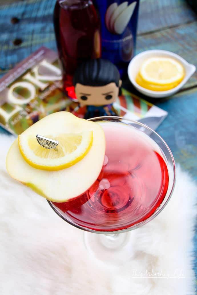 And so, it is the good found in Loki (no matter how deep down it may be buried inside of his dark heart) that we summarily present The Loki Vodka Martini. And befitting a proper Asgardian cocktail, the taste of Golden Apples runs amok.