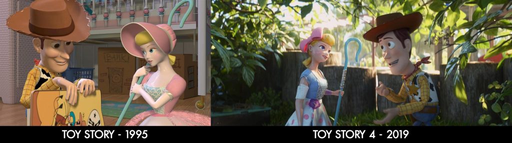 THEN AND NOW – Filmmakers behind “Toy Story 4” were committed to keeping the new film in the same universe as the original “Toy Story.” But 24 years have passed since “Toy Story” debuted and the technology—as well as the experience and knowledge of the people behind it—has advanced lightyears, so to speak. These images showcase those advances in terms of character shapes and textures, rigging, rendering, and lighting. Directed by Josh Cooley, “Toy Story 4” opens in U.S. theaters on June 21, 2019. ©2019 Disney/Pixar. All Rights Reserved.