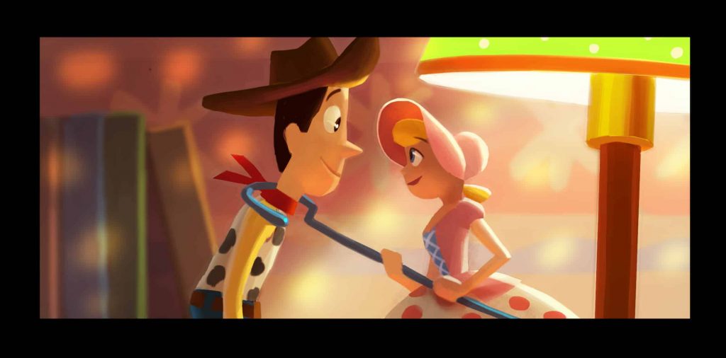 According to screenwriter Stephany Folsom, Bo and Woody first connected as leaders of their respective rooms. “Woody ran Andy’s room, overseeing the toys there, and Bo was in charge in Molly’s room,” says Folsom. “There’s a certain responsibility that comes with running a room, and it’s clear that Bo is strong and in control.”