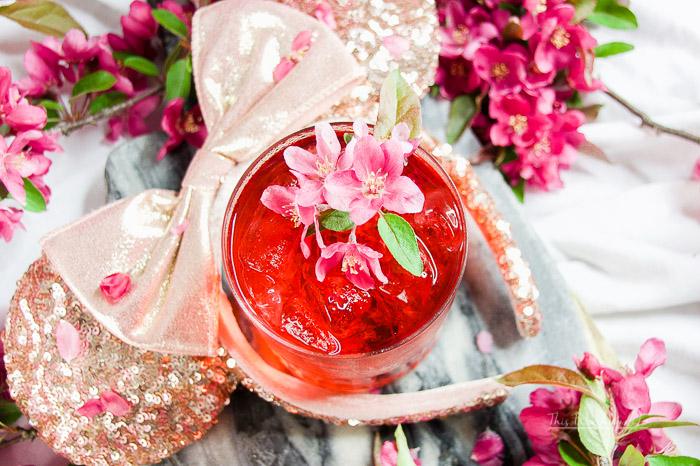 Did you know these super cute Rose Gold Minnie Mouse ears are magical? It’s true. The Mrs. put them on and instantly felt like a Disney princess, you couldn’t tell her anything. She stood a little taller, her smile was a little brighter. I even think she took on an air of royalty giving her commands and royal decrees, but wait, she always does that, maybe she’s always been a Disney princess, she certainly looks the part. And even though my pretty princess doesn’t indulge; she takes her cocktails sans spirits, doesn’t mean you shouldn’t have the full-Monty at your disposal, right? I give you the full pretty version and I think your princess will love it!