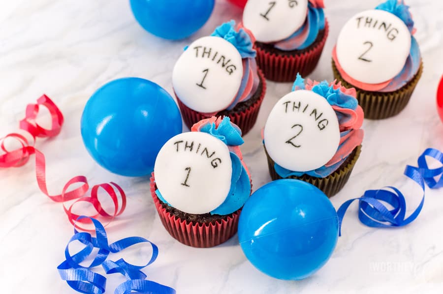 As we celebrate his birthday tomorrow, I have a fun recipe idea to try: Thing 1 and Thing 2 Cupcakes. I’ve previously shared Dr. Seuss Snack Idea: Thing 1 and Thing 2 Jello Snack for Kids before so definitely check those out if you want more Dr. Seuss recipe ideas.